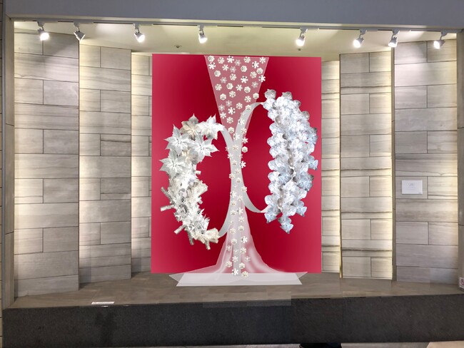 館内もクリスマスの再会を祝うオーナメントで皆さまをお出迎えします。目玉となるのは紀尾井テラス2階のウォールギャラリー(「成城石井」横)に登場する、使用済みの空のペットボトルの美しいアート作品です。ペットボトルアートのパイオニア本間ますみ氏により制作された本アートは、ウラジロモミを模した枝やヒイラギでクリスマスを表現しています。公共の文化施設かSDGsの取り組み施設でしか見ることができない珍しい作品です。また本アートでは、大橋禾苗氏が制作した、牛乳パックを使用したシャドウボックス「雪の結晶」も一緒に楽しむことができます。幸運の象徴であるポインセチアの繊細で美しい葉脈や、胡蝶蘭の花弁の鮮やかな斑紋が織りなす白い世界をお楽しみください。
