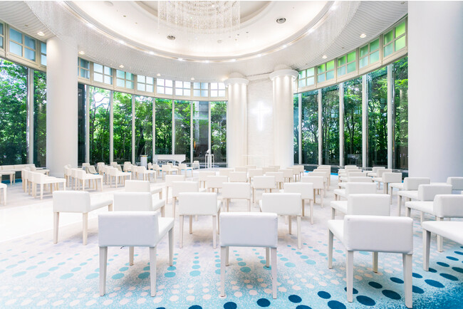会場となるのは、本年4月に株式会社クォーターズが発表した「息をのむほど美しい 日本の美しいチャペルベスト100」にも選出されている『チャペル リュヴェール』。天井高7m、円形空間を囲む大きな窓の外には鮮やかな緑が広がり、柔らかな木漏れ日がやすらぎを誘う“都会(まち)の森のチャペル”です。