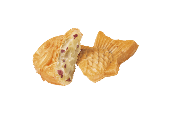 薄皮たい焼『鳴門金時 芋あん』(下)は、徳島県産の「鳴門金時」を使用し、加熱すると柔らかい甘みとホクホクした食感が特徴で、さつま芋の素材感を大切に、特製の芋あんを薄皮にたっぷり包み込みました。