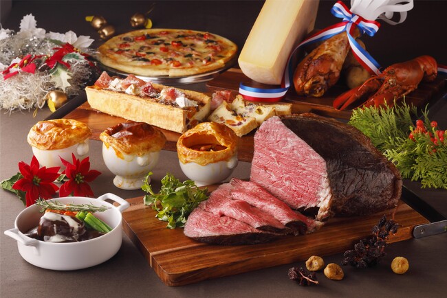 そのほかに「オマール海老と十勝産マッシュルームのアメリケーヌポットパイ」や「十勝和牛の赤ワイン煮込み」「フカヒレと衣笠茸のラーメン」「ローストチキンスライス カプレーゼ仕立て」など、聖夜を彩る特別なお料理が並びます。