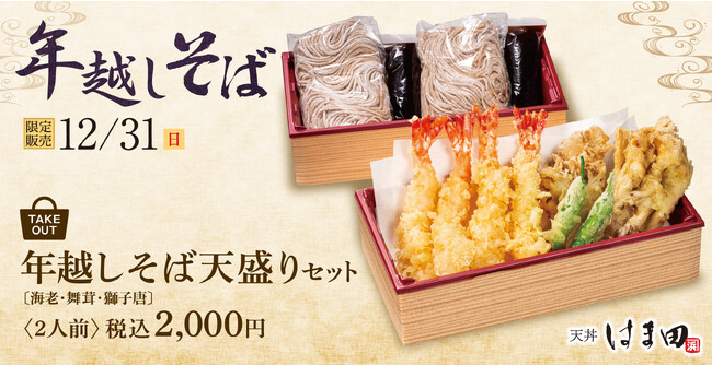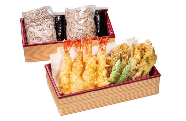 「こんなお店があったらいいな」を身近に。がコンセプトの「天丼はま田」では、ご自宅で年末年始をお過ごしの方にご好評いただいている「年越しそば天盛りセット」を今年も数量限定で販売いたします。「年越しそば天盛りセット」は、一番人気の海老や、舞茸そして獅子唐を天ぷらに仕立て、そばとそばつゆを2人前で1セットにしました。ご自宅で専門店の味と共に年越しそばをお楽しみいただけます。