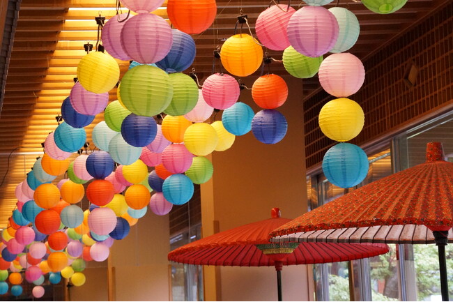 更には通常18:00~の和傘と提灯のライトアップを17:00~の開始。