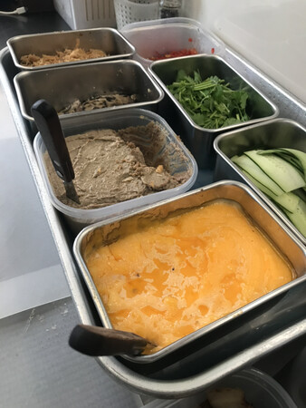 バインミーバーバーでは、バインミーを本場の味に再現するために、パンや具材にこだわって作っています。 調味料はベトナムで実際使われているものを使い、具材は日本にないものが多いため、ほとんどを手作りしています。ベースとしてパンに塗るマヨソースとレバーペーストは秘伝の味。マヨソースは、日本のマヨネーズを違って卵の味が濃厚で、酸味が少なくとろみが強い。?味のないカスタードクリームのようです。レバーペーストは、豚と鶏のレバーを使用。しっかりとした処理をしたレバーは臭みが少なく、スパイスが効いた濃厚な味わいとクリーミーな?触りが最高です。