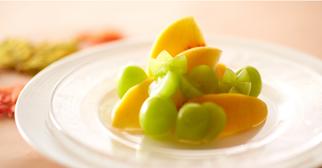 味覚の秋に実ったフルーツたちを食べ放題でご提供します。10月のラインナップはほどよい甘みと緻密な果肉の「柿」。ほおばると果汁がはじける「ぶどう」。そしてとろけるような食感とやさしい甘さの「いちじく」。