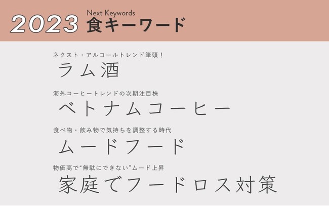 2023年 食キーワード: 次期トレンド候補の飲料、ヒットの兆しが見えたムードフードなどに注目