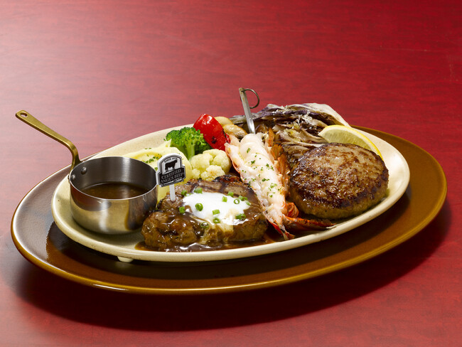 本フェアは、創業50周年を記念して2021年11月から開催し、第5弾となる今回でファイナルを迎えます。洋食小皿では、洋食の中でも特に人気の高いオムライスとハンバーグを組み合わせた「トリュフクリームオムライス&煮込みハンバーグ」が登場。「マッシュルームスープとちいさなコンソメジュレ&フラン仕立て~蟹~」の前菜から始まり、メインには定番の「紅ずわい蟹のクリームコロッケ」まで付いた、ごちそう感たっぷりの洋食小皿です。また、フェアメニューだけでなくグランドメニューにもお付けできるセットメニューとして、新たに「冬のごちそうセット」を提供します。その他、ご好評のこだわりのCAB(R)アンガスサーロインステーキを厚切りでお楽しみいただくメニューは、付け合わせをマッシュポテトと国産トレビスなど季節を感じられる数種類のグリル野菜にリニューアルして提供いたします。