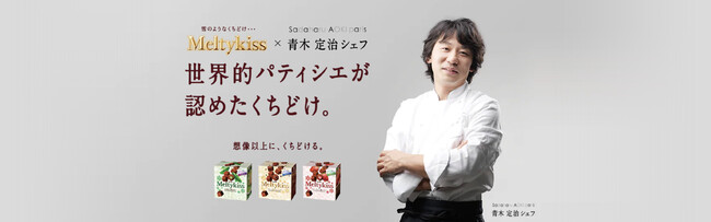 1992年の発売以来、「雪どけのような口どけ」をコンセプトに冬期限定チョコレートの定番商品として長年親しまれてきた「メルティーキッス」が、本年で30周年という節目を迎えます。この節目を記念して、より「メルティ―キッス」を様々な形で皆様に楽しんでいただきたいという想いから、パティシエ 青木 定治がアンバサダーに着任し、今後様々なコラボレーションやキャンペーンを実施していきます。サダハル・アオキ・パリが提供する素材へのこだわりや、素材を活かした菓子作りへの妥協なき姿勢が当ブランドの提供価値や想いと合致し、今回アンバサダ―の就任およびコラボレーションの実現に至りました。