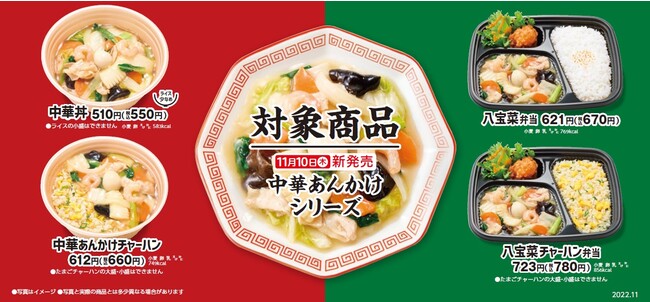 対象商品:中華あんかけシリーズ(中華丼/中華あんかけチャーハン/八宝菜弁当/八宝菜チャーハン弁当)