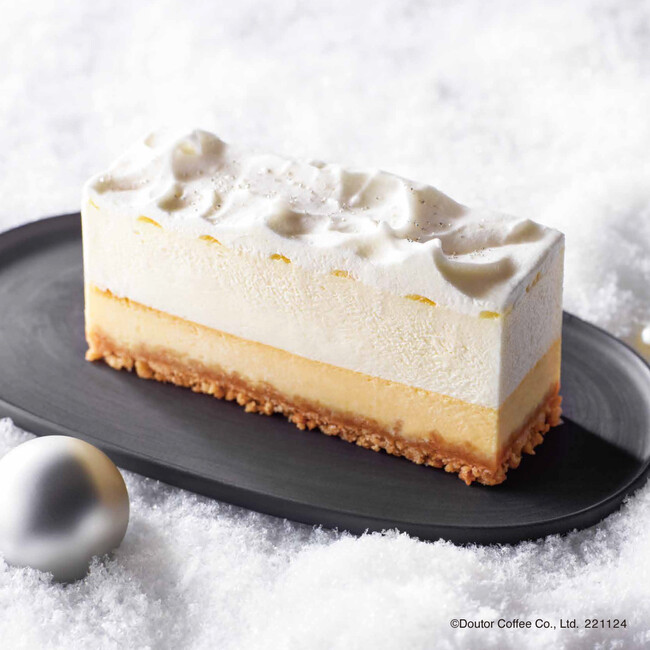 下の層は、濃厚な口当たりのベイクドチーズケーキ、上の層は、隠し味にホワイトチョコと白ワインを使ったレアチーズケーキです。さらに、レモンソースとホイップクリームを重ね、すっきりとした味わいも楽しんでいただける仕立てになっています。