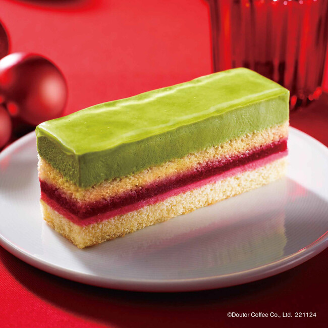 クリスマスの時期に、緑と赤がショーケースを鮮やかに彩る見た目も楽しめるケーキ。