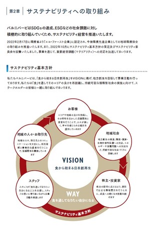 バルニバービグループは、「美味しいものを、より楽しく、より健康に、より安く」をテーマに、「なりたい自分」を目指すスタッフが個性的な店舗運営を行うことにより、外食の未来を創造する企業として成長を遂げてまいりたいと考えております。その思いをもとに、より多くの人々が楽しく豊かに暮らせる社会を目指して、「食から始まる日本創再生」をVISIONにかかげ、「食」を通してそのエリアの良さを再認識し、持続可能な循環型社会の実現に貢献することを目指してまいります。