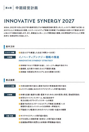 本統合報告書では、当社の2023年度から2027年度までの5カ年を対象にした新たな中期経営計画方針「イノベーティブシナジー2027」を発表しております。