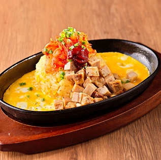 じっくり煮込んだチャーシューとキムチを合わせた病みつきになる鉄板チャーハン。熱々の鉄板に卵を流しているので、お客様のお好みに混ぜてお召し上がりください。