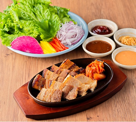 野菜たっぷり!味噌漬けと白ワイン葱ダレのサムギョプサル 1,400円