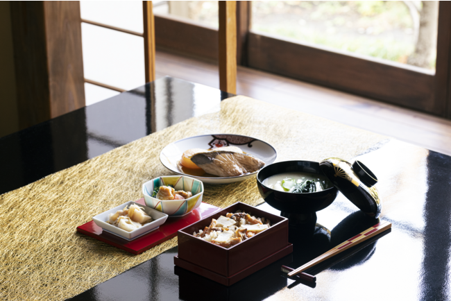 メニューは主食、汁物、主菜、副菜を組み合わせた5‐6品からなる一汁三菜以上の和食献立となっており、まるで旅館で提供されるような御膳をお楽しみいただけます。