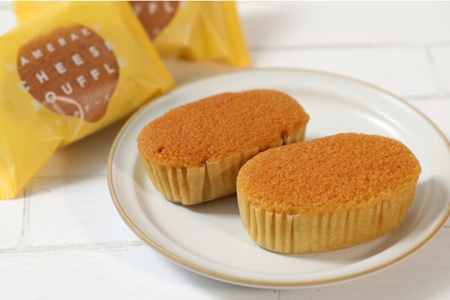 じっくりと湯煎焼きにした、ふんわり軽い食感のキャラメル味のチーズスフレケーキです。