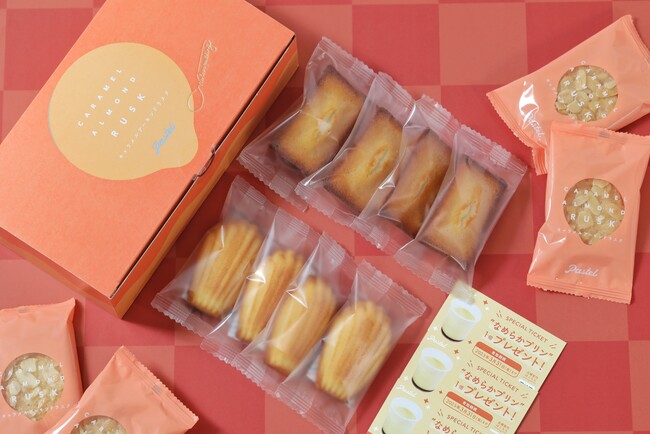 ・内容:キャラメルアーモンドラスク 12枚入、マドレーヌ 4個、フィナンシェ 4個、なめらかプリン引き換え券 3枚
