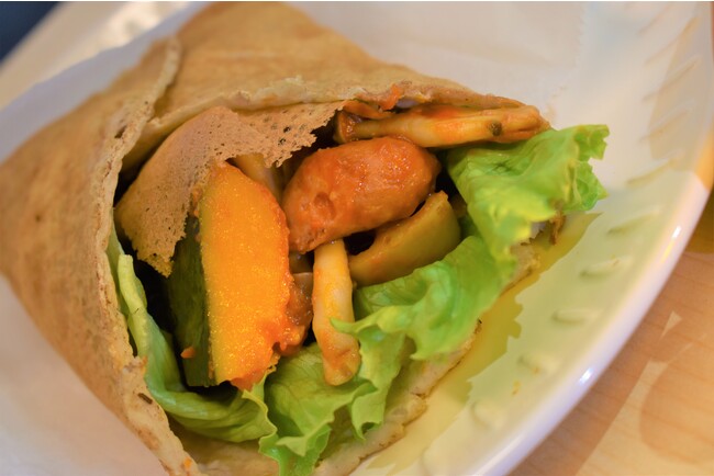 1.「伊那谷を食べよう!」をテーマに、伊那谷産のそば粉やカボチャなどの地元の食材を使った伊那谷ガレット(お食事ガレット・デザートガレット)をお立ち寄りいただきましたお客さまに無料で提供