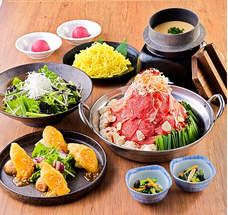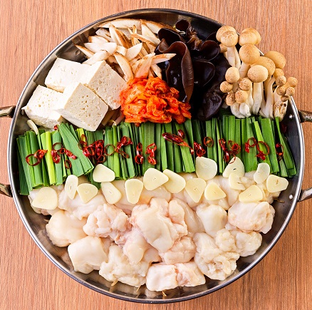 牛・豚・鶏・ホルモンと様々なお肉とたっぷりの野菜で山型にし、赤身の美しい牛肉でコーティングしたビジュアルにもインパクト大の「肉鍋」。パーティーを盛り上げること、間違いありません。にんにくを焦がしたスープが食欲をそそる、当店一押しのトレンド鍋です。