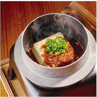 ご注文いただいてからお席で炊き上げる熱々の「釜炊き麻婆豆腐」。通常、豚ひき肉を使用するところを鶏ひき肉を使い、スパイスを効かせ本場中華の味を再現いたしました。あっさりとした味わいと山椒のバランスが堪らない少し大人の麻婆豆腐です。お好みの大きさに豆腐を崩して肉味噌と混ぜてお召し上がりください。