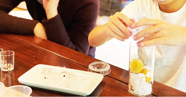 このワークショップは蝶矢が株式会社SPACEと共同で企画開発しました。蝶矢がこれまで夏休みなどに開催してきた、梅シロップの手作り体験を通じて食育・歴史・地理・科学などを学ぶ小学生向けワークショップ「子ども梅体験」をベースにしたもので、今回は子どもの五感を使って感性を開き、自分の本当の個性や特性を見つけやすい内容にアレンジしました。