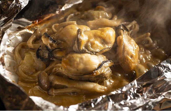 冬の塚田農場の風物詩と言える商品になりつつあるこのホイル焼きは、瀬戸内海産の真牡蠣を特製のイカわたソースで蒸し焼きにする、こだわりの一品です。残ったソースにはぜひ白ごはんを混ぜて、最後までお楽しみください。