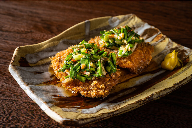 いぶりがっこの滋味と薫香は、想像する以上に塚だま(R)のタルタルソースとの相性が抜群で、甘酢ともよく合います。気づいたらお皿が空になっているかもしれません。