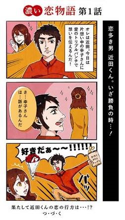 今回の『ポテトチップス コンソメトリプルパンチ』を皮切りに、順次発売するコンビニエンスストア限定商品の裏面で漫画仕立てのショートストーリー「濃い恋物語」を展開します。合わせて、カルビーPR部公式Twitterアカウント(@Calbee_PR)上で、ストーリーに関連したプレゼントキャンペーンを実施いたします。