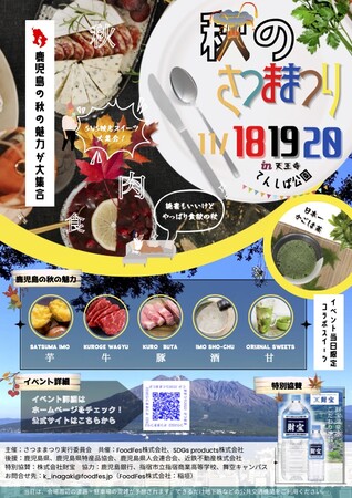 FoodFes株式会社(代表取締役:稲垣一馬)は2022年11月18日(金)、 19日(土)、 20日(日)の3日間、大阪天王寺公園”てんしば”にて「秋のさつままつり2022」を開催します。