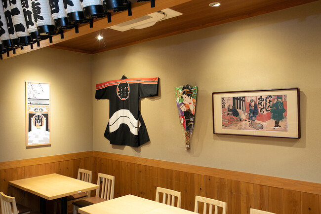 新メニュー「プラチナにんにくうな重」は、伝統継承と新しい挑戦に取り組む歌舞伎のように、うな丼・うな重という江戸時代に生まれた食文化を守りながら、うなぎの新たな魅力を引き出していきたいとの思いから誕生しました。 鮒忠浅草花川戸店では店内には歌舞伎をテーマにした江戸時代の浮世絵(役者絵)を展示していて、情緒あふれる店内でお食事をお楽しみいただけます。