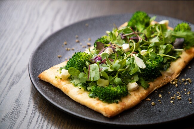スポーツ観戦と言えばピザ!の定番フードをグリーンベジタブルとシェーブルチーズで仕上げたサッカーフィールドをイメージしたピザ。食べやすいサイズでお1人様でも気軽に頼めるライトなサイズ。