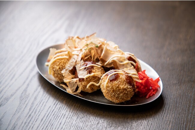 ビリヤニの中に蛸、ハラペーニ ョ 、チーズの具材を2個づつ入れたライスボール。JAPANのカルチャーフード “たこ焼き”に見立てたスタジアム気分になる1皿。