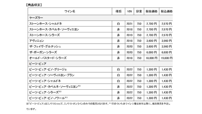 「ケーズラー」は、オーストラリアのワイン産業中心地で“シラーズの首都”と称される南オーストラリア州バロッサ・ヴァレーに位置し、高品質なシラーズを手がけ高い評価を獲得しています。「ピーツ・ピュア」は、ニュー・サウス・ウェールズ州、ヴィクトリア州、南オーストラリア州の接合部に位置し、オーストラリアで最も肥沃な地域のひとつであるマレー・ダーリングで、コスト・パフォーマンスに優れたワインをサステナブルな方法で手がけ、近年急成長を遂げる生産者です。2022年10月に取り扱いを開始したヤラ・ヴァレーの「ジャイアント・ステップス」「メイヤー」「ヤラ・イエリング」に続き、オーストラリアワインの商品ポートフォリオを強化し、多様化する消費者ニーズにお応えすることで、より一層お客さまへ豊かなワインライフを提案します。