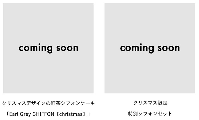 さらにクリスマスデザインの紅茶シフォンケーキ「Earl Grey CHIFFON【christmas】」と「クリスマス限定 特別シフォンセット」を近日発売予定です。