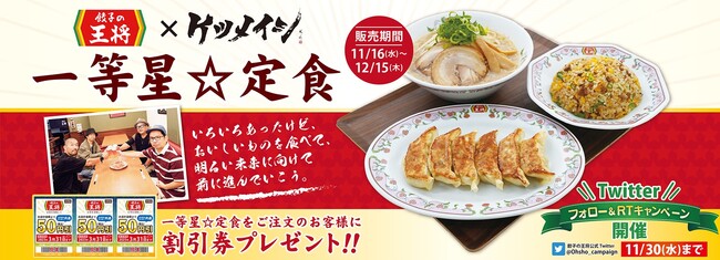 また、餃子の王将公式Twitter では「一等星☆定食」の販売を記念し、11月16日から11月30日の期間、