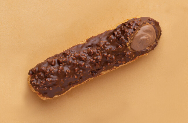 小枝のサクサク感とチョコレート、アーモンド、パフの絶妙な味わいを再現しました!サクサクとまらない、後引くおいしさのシュークリームです。