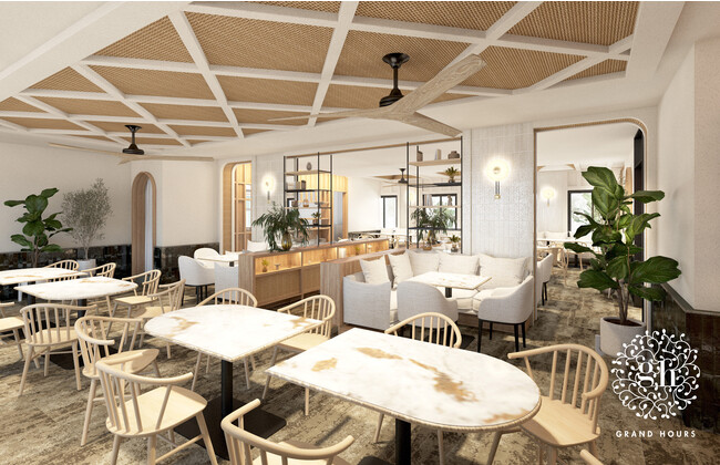 明るく開放的な店内には、ホワイト×ゴールドに天然素材など自然の温もりを感じるインテリアを。大きくガラス扉が開くガーデン側のお席は、季節感が溢れるテラス席の雰囲気もお楽しみいただけます。その他、年代を選ばず幅広い方々に永く愛していただけるよう、使い込むほど味が出る丈夫で上質な素材や、環境に配慮されたアイテムを使用。天神店とはまた違ったグランアワーズの魅力をお楽しみください。