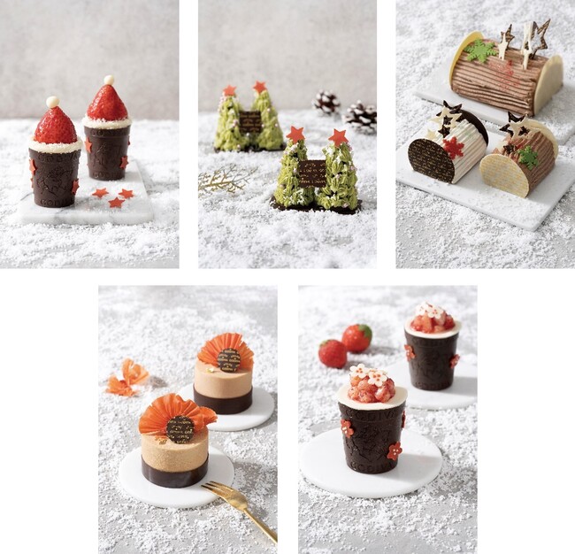 また定番の「シン ガトーショコラ」、「パレ ショコラ」、「ショコラ カフェ クルスティアン」、「クープショコラ ショコラ ノア」、「クープショコラ プラリネ」もクリスマス期間限定のデコレーションでお楽しみいただけます。
