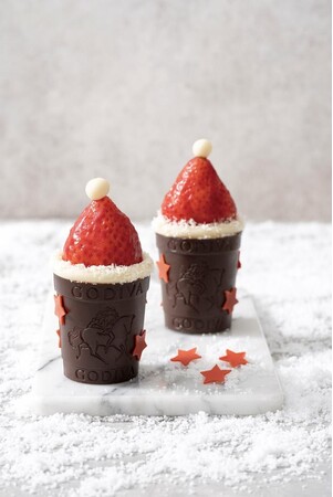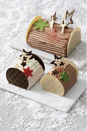 サンタクロースをイメージしたデコレーションが可愛らしいチョコレートカップの「クープショコラ サンタクロースの帽子」や、パッションフルーツピューレを使用したガナッシュに、カカオの濃厚な味が楽しめるダークチョコレートムースを合わせた「ゴディバ ブッシュ ド ノエル ノワール」「ゴディバ ブッシュ ド ノエル ブラン」など全7種類が登場します。イートインでは、それぞれに相性ぴったりなアイスクリームを添えて提供いたします。