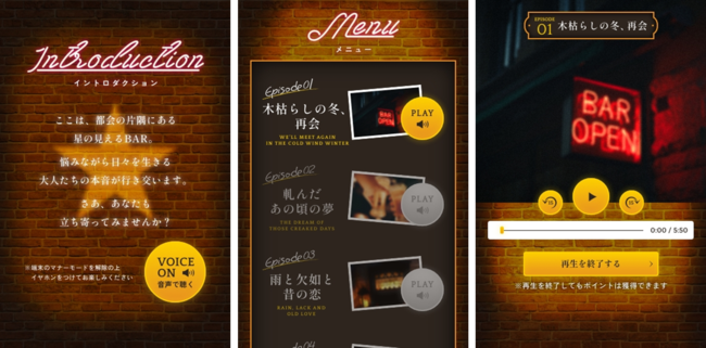 まるで「星の見えるBAR」に自分もいるかのような臨場感あふれる大人の没入型オーディオドラマをお楽しみください。