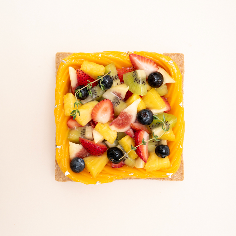 果実の甘みとヴィーガンクリームのやさしいコクが調和する、気持ちまで澄みわたるタルトです。
