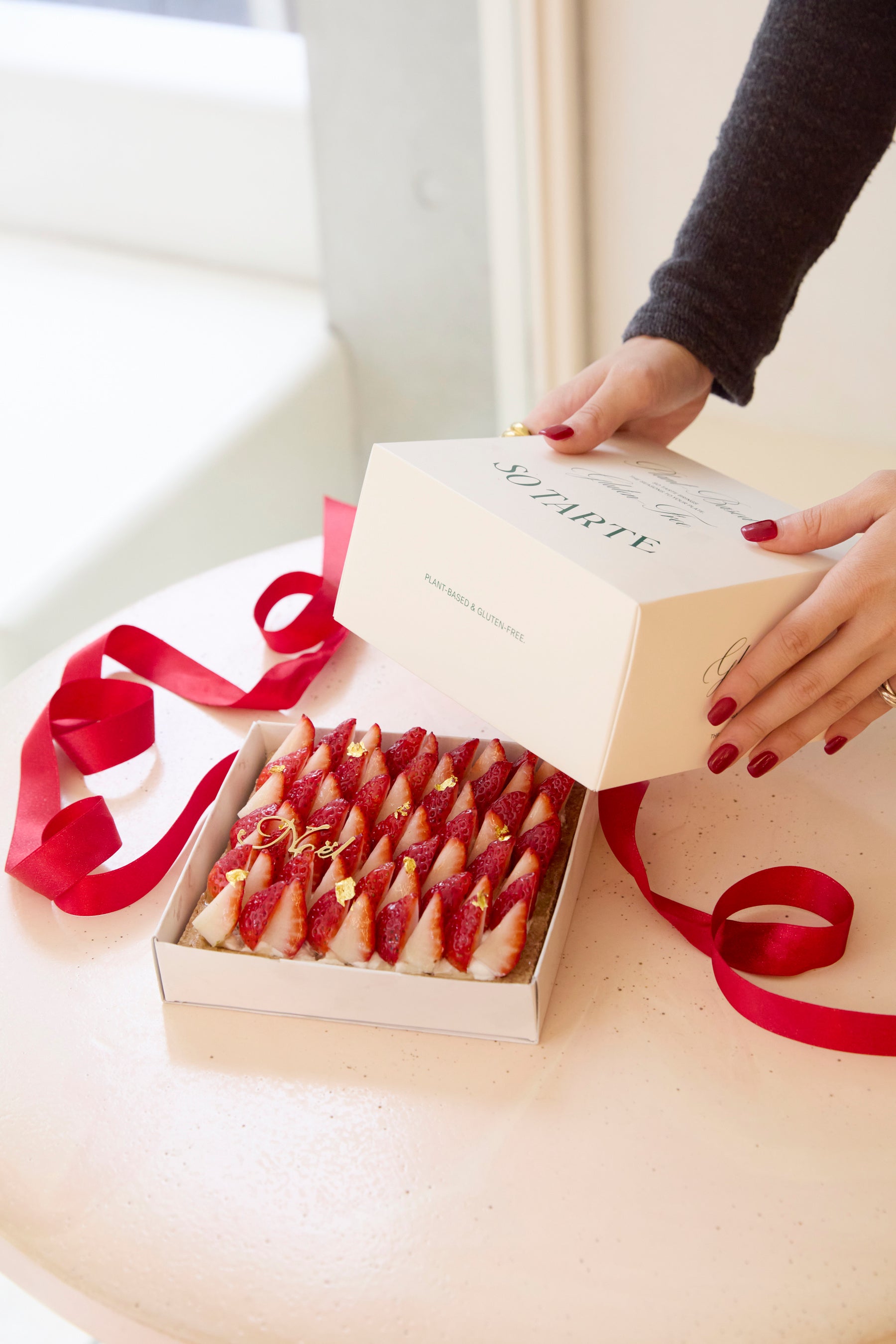 スクエアボックスタルトが生み出すのは、 ホールケーキともカットケーキとも違う “特別感”。フタを開けた瞬間に“整った美しさ”が視界いっぱいに広がり、SO TARTE らしい洗練が宿ります。この形とサイズはギフト文化が進む今の時代にぴったりのサイズ感。 持ち運びもしやすく、記念日以外の “何でもない日ギフト” にも最適です。