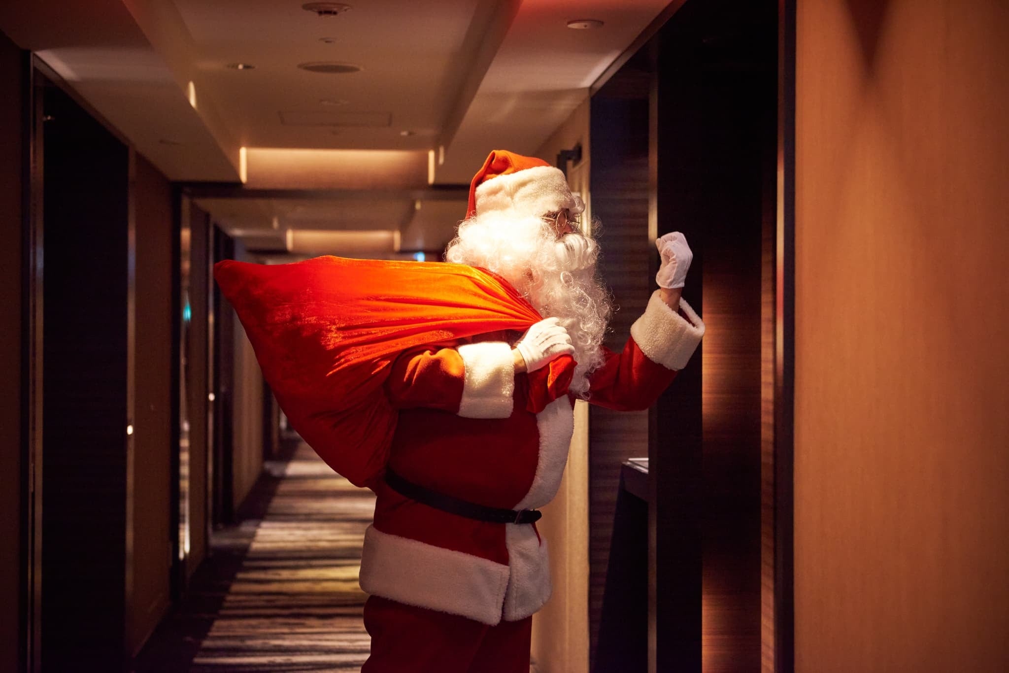 お子さまやパートナーにサプライズを仕掛けたい方必見の宿泊プラン『カミングサンタクロース~サンタがお部屋にやって来る~』。事前にお預かりしたプレゼントを、ご指定の時間にサンタクロースがお部屋までお持ちします。お部屋のベルが鳴り、扉を開けると「メリークリスマス!」の掛け声とともにサンタクロースが登場。サンタさんから直接プレゼントを受け取る瞬間は、大人も子どもも心ときめく夢のようなひととき。