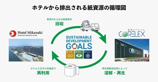 一方、コアレックスは、家庭紙業界における再生紙技術のリーディングカンパニーとして、使用済み紙資源を再び高品質な製品へと生まれ変わらせる循環システムを構築してきました。本実証により、観光・宿泊業と製紙業が連携し、地域発のサーキュラーエコノミーの実現を目指します。