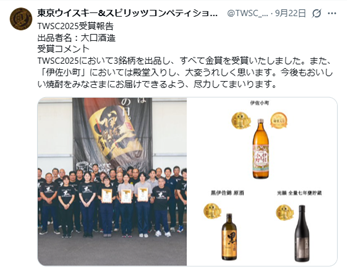 東京ウイスキー&スピリッツコンペティション公式SNSで、受賞者の写真と受賞コメントを投稿、You tubeで受賞者インタビューを公開いたします。