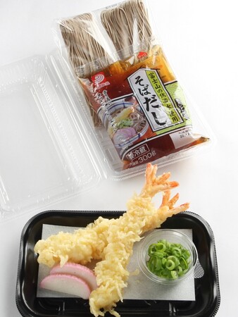 大海老天ぷら2尾、生そば、オリジナルのそばつゆ、かまぼこ、薬味付きのお得なセットです。12月31日(日)のみの販売となります。