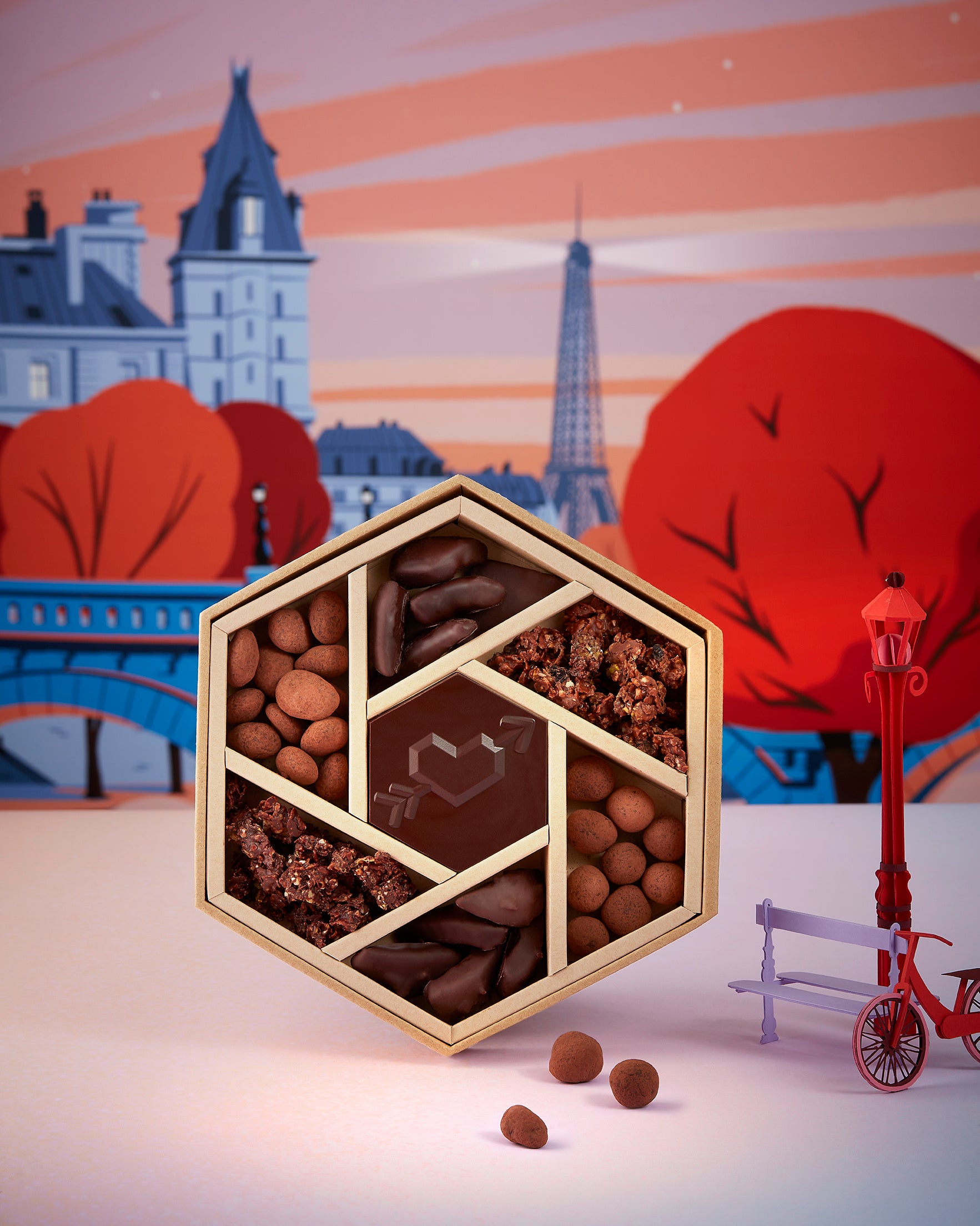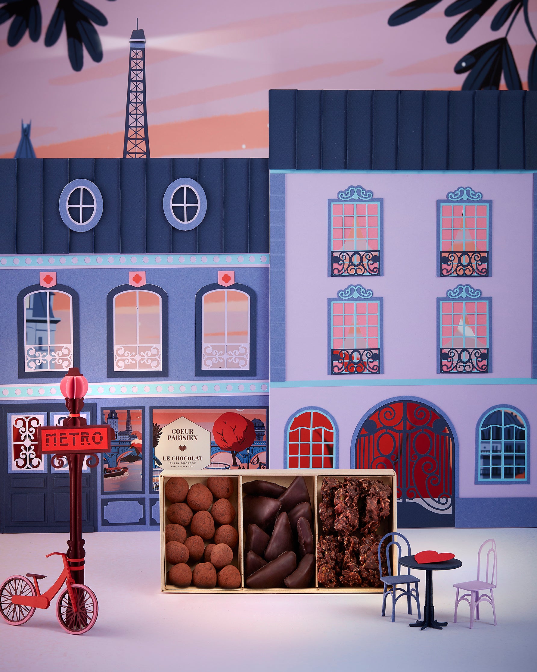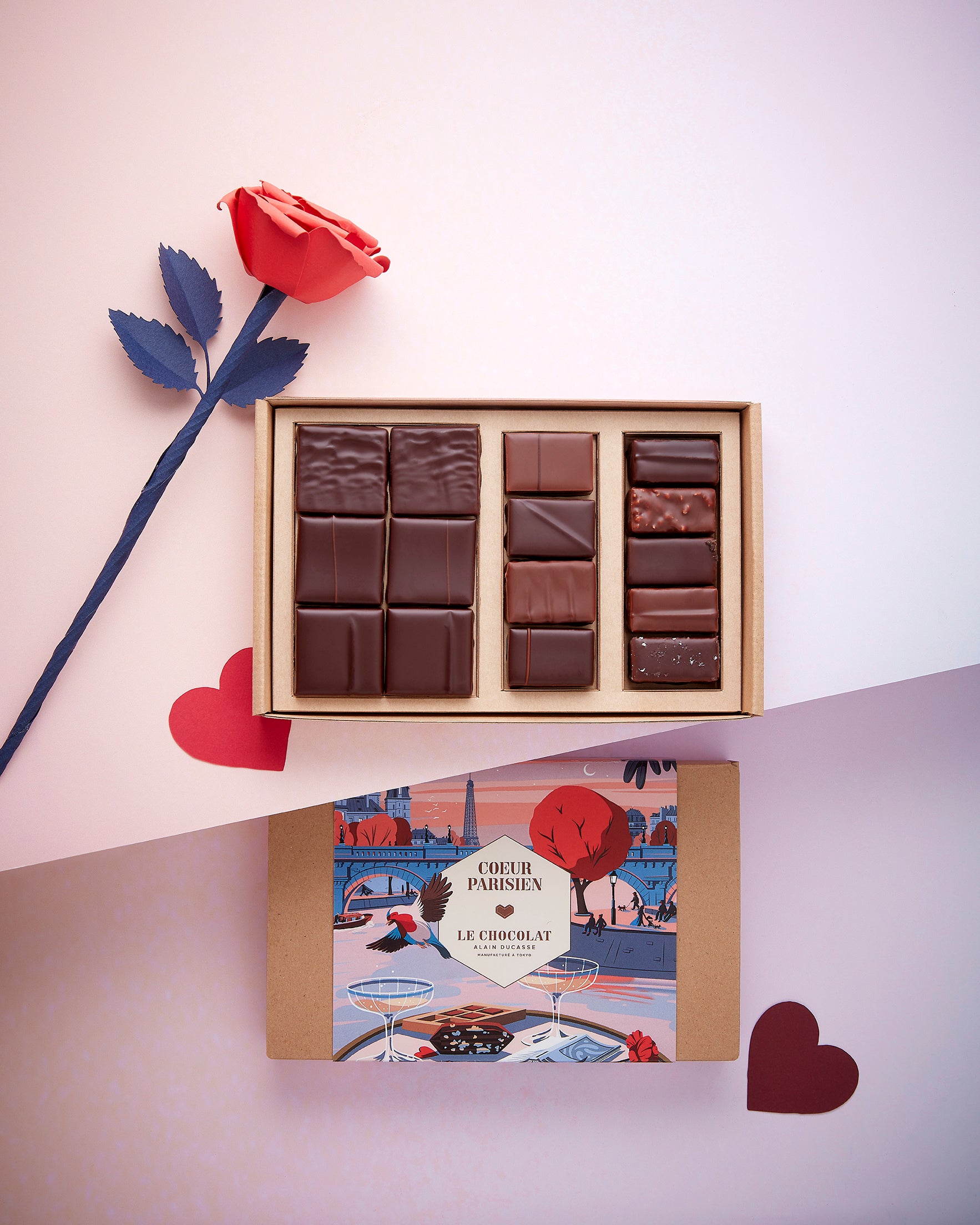 パッケージは、フランスの人気イラストレーター Paul Sirand(ポール・シラン)によるデザイン。セーヌ川のほとりでカクテルとショコラを楽しむパリらしい情景を描き、ときめきと洗練が響き合う世界観を演出しています。