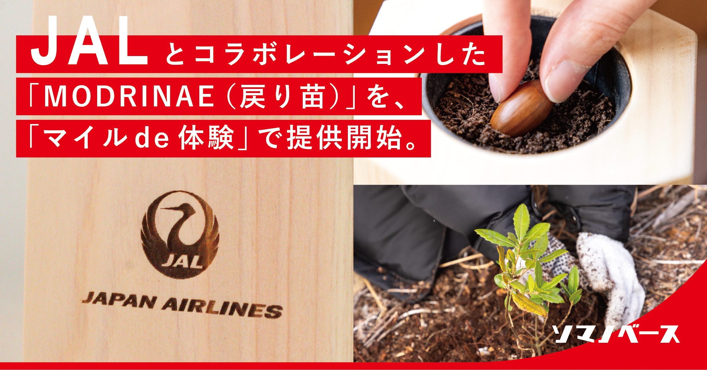 「土砂災害による人的被害ゼロ」を目指し、森づくりに取り組む株式会社ソマノベース(本社:和歌山県田辺市、代表取締役社長:奥川季花、以下:当社)は、JALグループの株式会社JALマイレージバンク(以下:JMB)と共同で、「MODRINAE(戻り苗)」のJAL限定デザインを『マイル de 体験』にて提供開始します。
