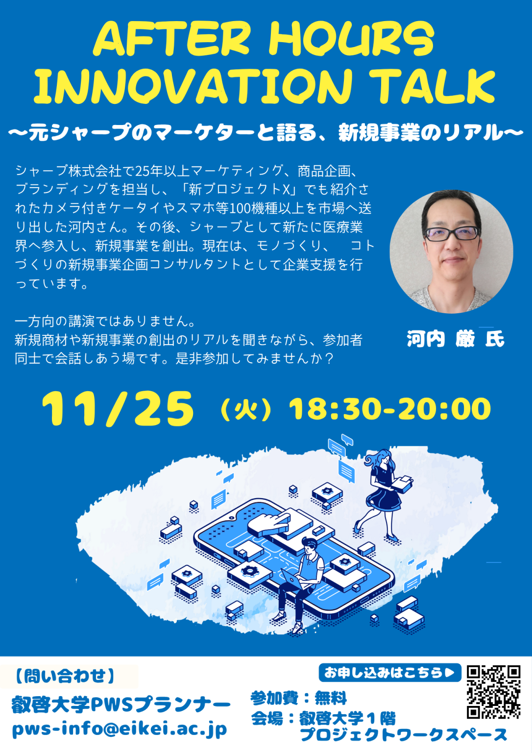 【参加者募集】11月25日(火) PWS月次イベント「After Hours Innovation Talk ~元シャープのマーケターと語る、新規事業のリアル~」 - 【公式サイト】広島県公立大学法人 叡啓大学
