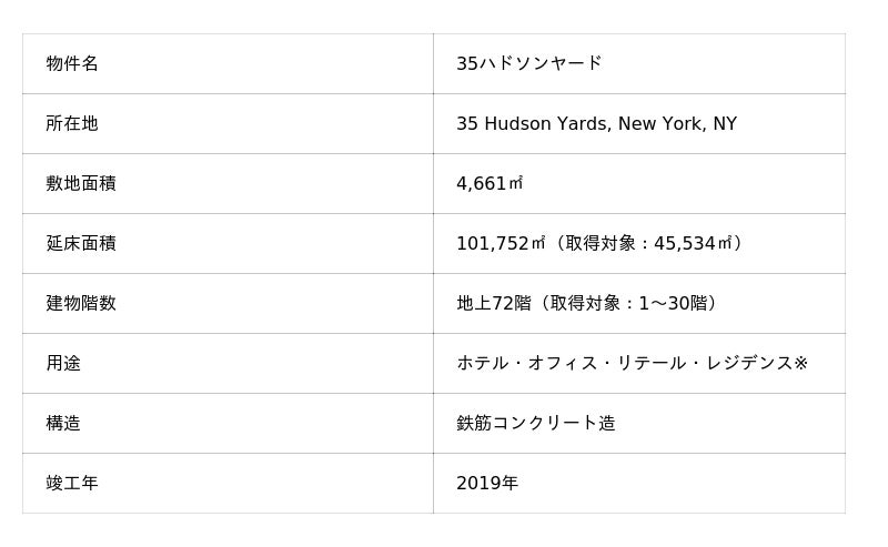 これにより、当社の米国における不動産投資実績としては12棟目、ニューヨーク・マンハッタンでは2棟目となります。